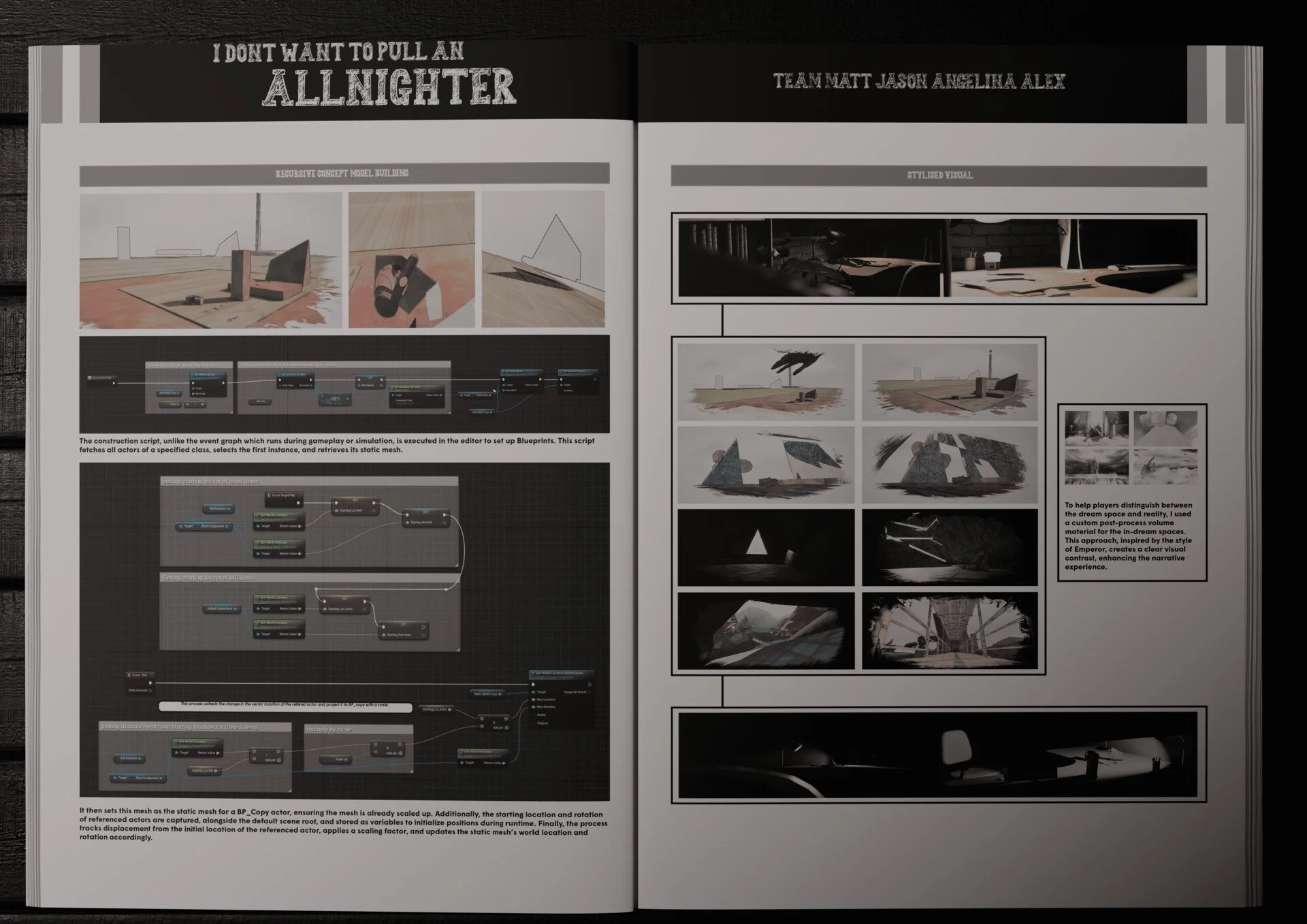 Awakened by a ringtone, the student returns to their workspace, realising it was all a dream—yet the model is complete, and they can finally rest.